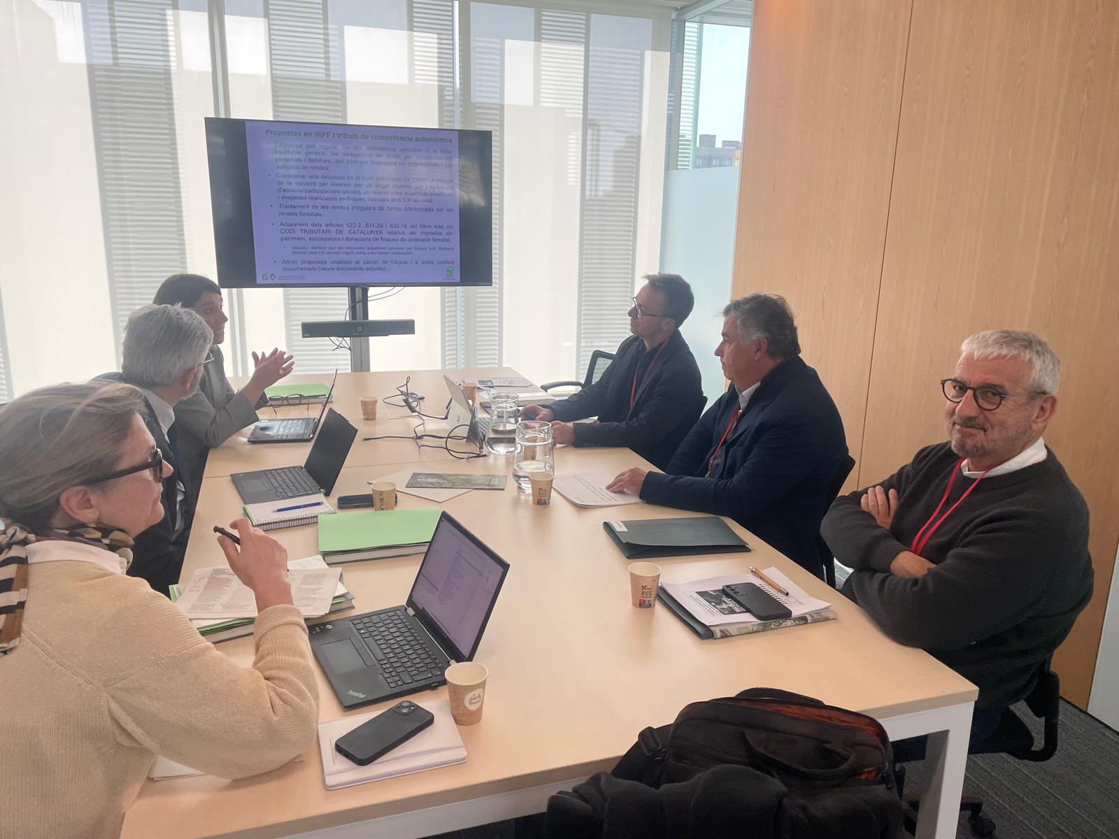 Durant la reunió, celebrada a la seu del Departament d’Economia i Finances de la Generalitat, es va exposar la situació actual del sector forestal i la necessitat d’impulsar mesures que incentivin la gestió activa dels boscos. En aquest sentit, es va plantejar que els gestors forestals puguin desgravar-se un 30% de la quantitat invertida en gestió forestal a l’IRPF, sempre que les finques disposin d’un Instrument d’Ordenació Forestal aprovat.